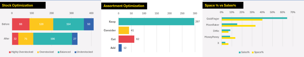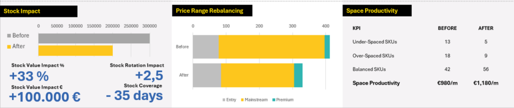 Before and After. Stock vibration, Assortment rationalization, Space productivity.